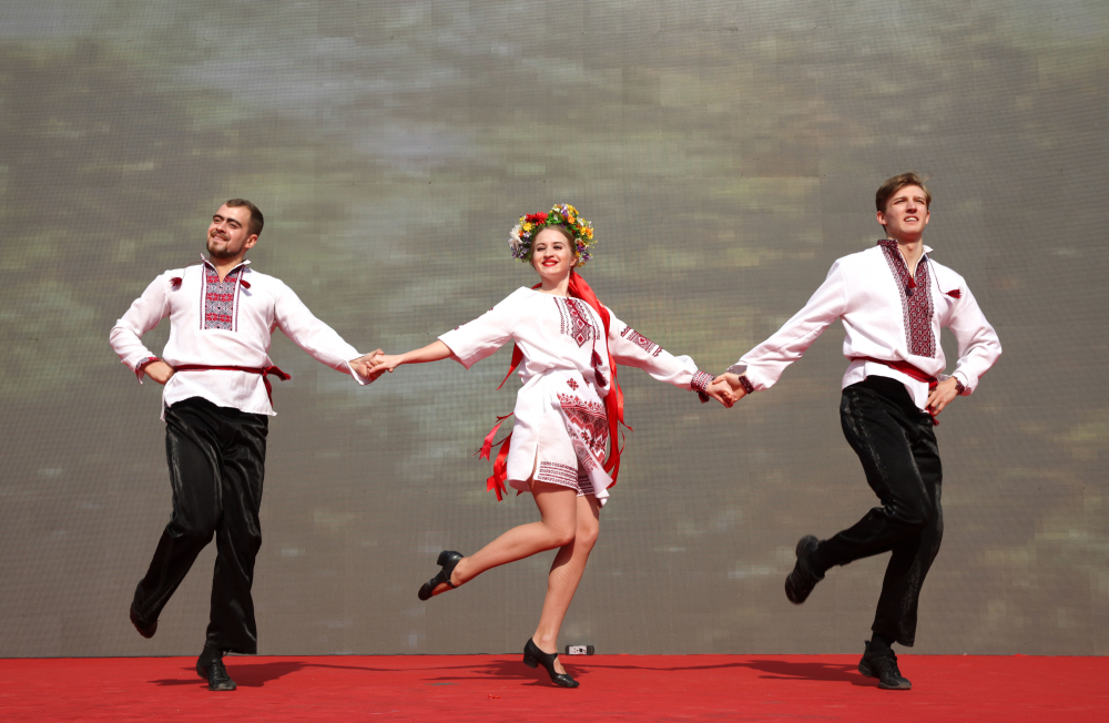 Foreign students from the South Sea Islands, Kazakhstan, Tanzania, Cuba and Ukraine perform folk dance of exotic charm and primitive vitality.