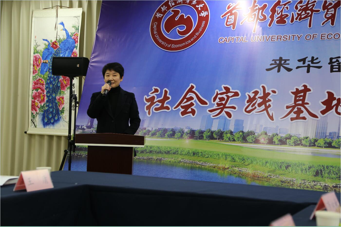 国际学院直属党支部书记兼副院长何丽在致辞中感谢通州区领导及张家湾镇领导的盛情邀请,介绍了首都经济贸易大学来华留学生发展历史、现有规模及学生培养,并表达了与张家湾镇共建社会实践基地对来华留学生了解中国及中国文化,培养知华友华国际人才的重要性。