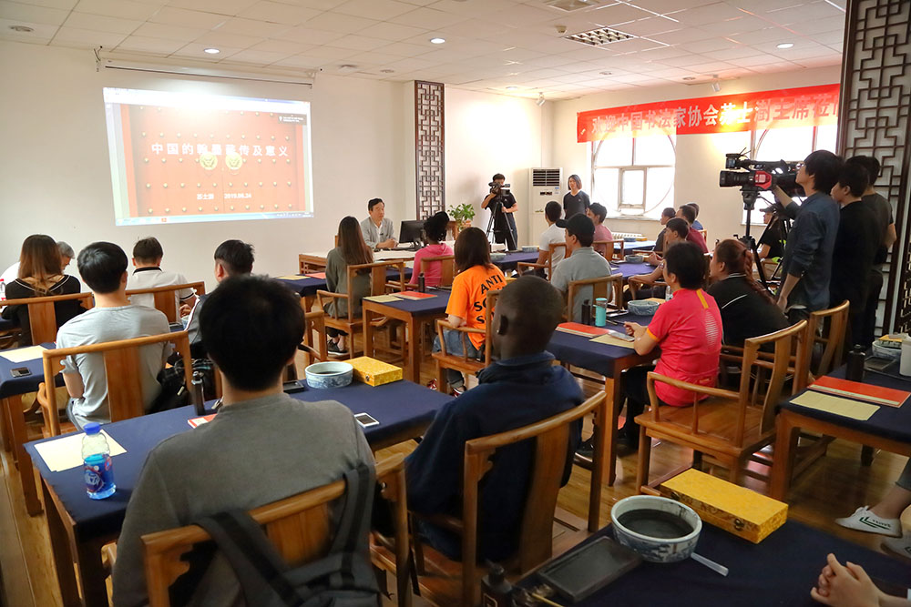 苏士澍的讲座题目是《中国的翰墨薪传及意义》。他从“实现中华民族的伟大复兴,就要大力弘扬汉字书法文化”“‘写好中国字,做好中国人’已成为社会各界的普遍共识”“汉字文化助力文化交流,美美与共”“为人民抒怀,勇攀时代‘高峰’”四个方面, 结合书法知识和自身创作经验,阐述了传承、发展、弘扬中华汉字文化的重要性,让师生们对汉字文化有了更深入地认识。
