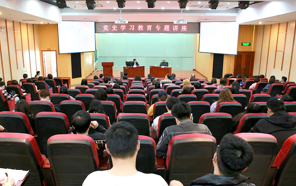 4月21日下午,商务与继续教育学院党总支、国际学院直属党支部联合举办党史学习教育专题讲座。讲座主题为《李汉俊与中国共产党“一大”》,由中国社会科学院近代史研究所客座研究员、中共创建史研究中心特约研究员、李汉俊外重孙女李丹阳女士主讲。商务学院、继续教育学院主持工作的副院长任韬主持讲座,商务学院、继续教育学院、国际学院及杂志总社全体教职工,以及学生党员、入党积极分子100余人参加了讲座。