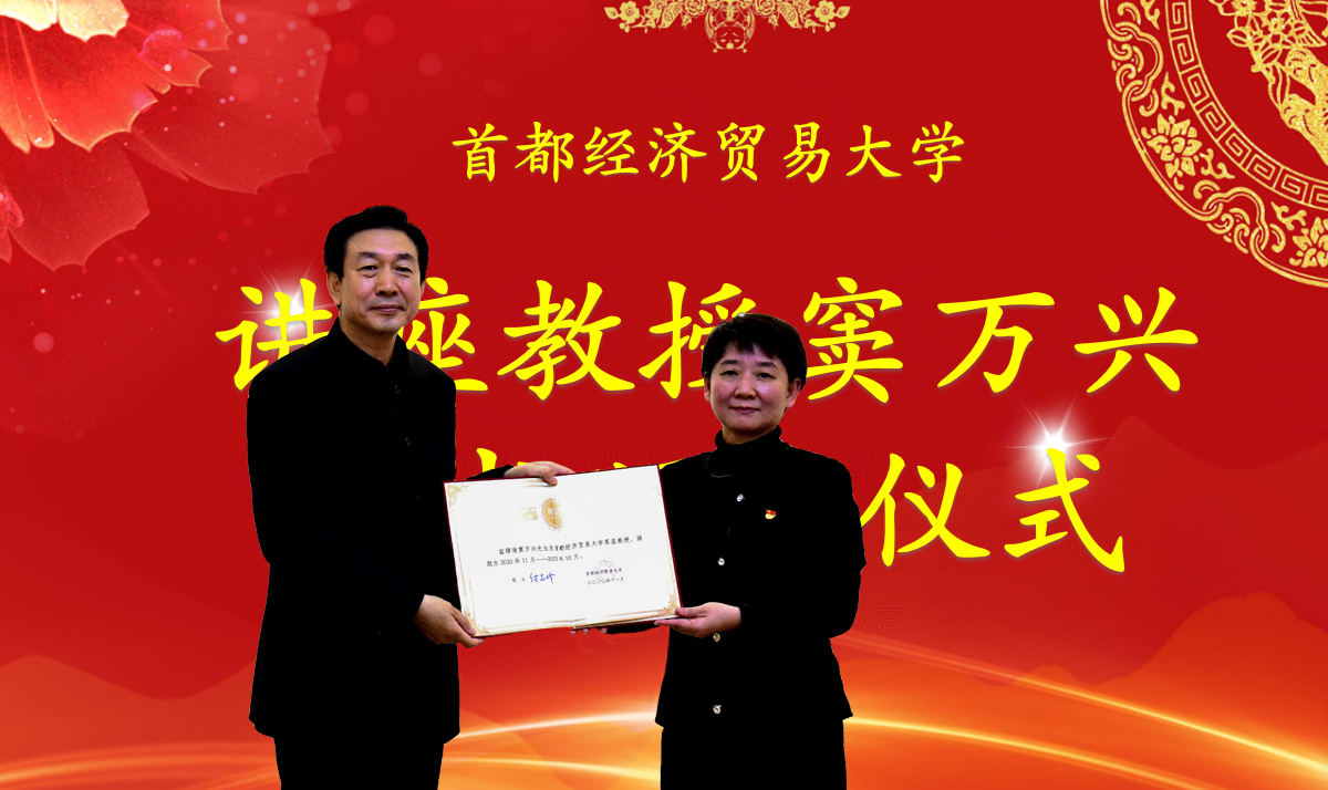 座谈会结束后,举行了国际学生社会实践基地合作协议签署和授牌仪式,以及颁发讲座教授续聘证书仪式。关鑫副院长分别与通州区新建立的两个国际学生社会实践基地(北京花儿朵朵花仙子农业有限公司、北京丹墨园文化艺术发展有限公司)代表签署了合作协议书并颁发了社会实践基地牌匾。何丽书记代表首都经济贸易大学为北京漕运书画院院长、通州区“两节办”主任窦万兴颁发首都经济贸易大学讲座教授续聘证书。