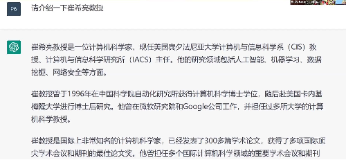 Chat-GPT是一个时下热门火爆的话题,它到底什么?能否为我们的对外汉语教学提供帮助?刘一杉老师对此有较深的了解和研究。此次分享内容包括Chat-GPT本身、Chat-GPT及类似工具的应用、Chat-GPT及同类技术的未来等三个方面。以大量生成聊天对话展示了Chat-GPT的优缺点。例如,给聊天机器人一个“请介绍一下崔希亮教授”指令,结果得到的答案令人捧腹,对外汉语圈内人所熟知的北京语言大学崔希亮教授,被描述成为一名在美国宾夕法尼亚大学工作的华裔计算机科学家。这也印证了Chat-GPT“一本正经地胡说八道”的缺点。