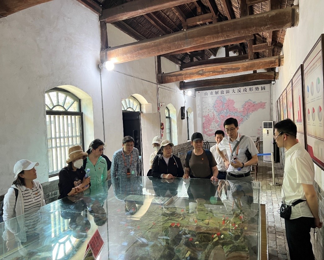 5月17日下午抵达临沂市后,赴莒南县大店镇参观省政府旧址和八路军115师司令部旧址。1941年,当地庄氏家族中的有识之士献出自己的宅院作为八路军115师机关办公用房,直到1945年抗日战争胜利,这里一度成为了115师和共产党领导的山东抗日武装力量的核心。115师在山东共进行了2.6万余次战斗,歼灭日伪军50余万人,长时间钳制着日军的行动,为抗日战争的胜利做出了卓越贡献。罗荣桓、陈士榘等革命领袖都曾在这里战斗、生活过,莒南一度成为山东的党政军指挥中心,被誉为山东的“小延安”。