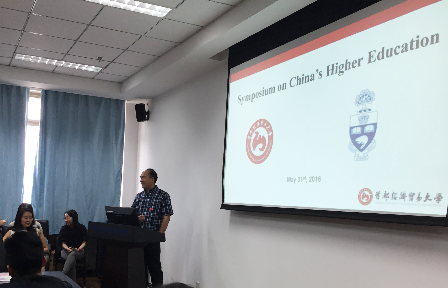 在介绍环节中,多伦多大学教授张卫国表示,此次交流活动是多伦多大学社会学课程的一部分,希望与首经贸师生探讨社会因素与教育的关系。经济学院国际交流项目协调人赵灵翡代表经济学院对多伦多大学师生的到来表示热烈欢迎,并通过数据、图表等形式对中国高等教育现状进行了介绍,展示了首经贸英文宣传短片。