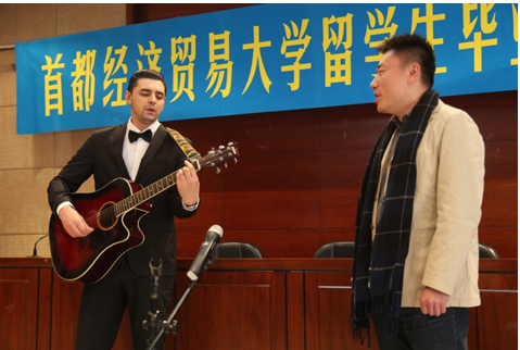 最后,来自巴西的小罗同学与国际学院刘一杉老师共同为大家带来了一首经典中国歌曲《月亮代表我的心》,表达了师生之间的深厚情谊,以及小罗同学对母校栽培的感激之情。