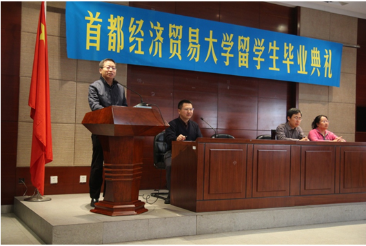上午10:15分,结业典礼正式开始。王少国院长首先致辞,他代表学院对顺利结业的留学生表示衷心的祝贺,并希望同学们能珍惜在学校结下的深厚友谊,常回母校欢聚。也希望留学生们结业后能学以致用,向世界传播中国文化,让世界更好地了解中国,做一名促进中外友谊发展的友好使者。