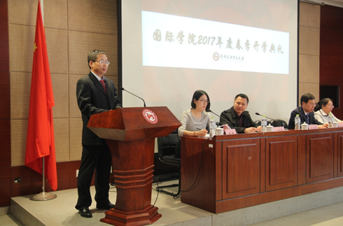 2月27日上午,国际学院2017年春季学期留学生开学典礼在红庙校区举行。国际学院院长王少国、党支部书记兼副院长李凤磊、副院长朱红、教研室主任刘文政及国际学院的教职工出席了开学典礼。