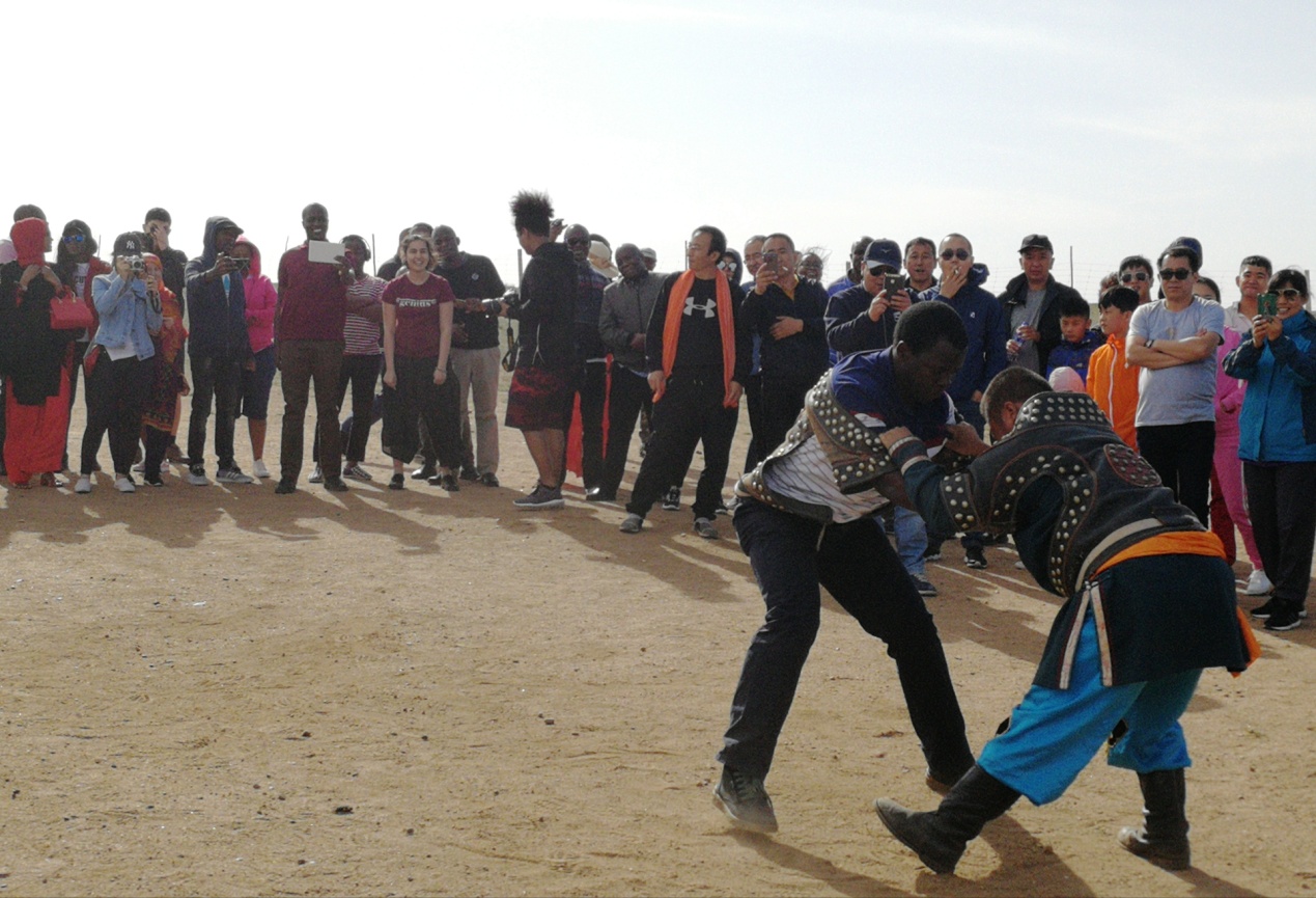 26日上午,我们的留学生们参观了内蒙古六十周年大庆献礼工程——内蒙古博物院,下午乘车前往希拉穆仁大草原,参观赛马、摔跤表演,晚上品尝烤全羊,参加篝火晚会,入住蒙古包。真真正正地体会了一把内蒙古人的生活。