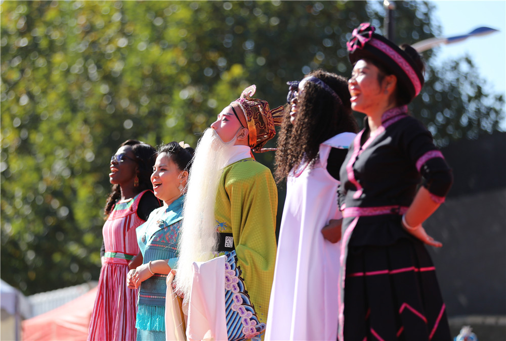 10月31日,首经贸第四届国际文化节开幕式上,在经典京胡乐曲《小开门》的旋律中,几位不同肤色的留学生身着本国特色服饰手拉手翩翩起舞。锣鼓响起、丝竹悠扬,他们或扮成《淮河营》中的蒯彻,或扮成《打龙袍》中的包拯,或扮成《女起解》中的苏三,踩着京剧锣鼓点走上舞台,一招一式、一颦一笑尽显京剧的魅力。