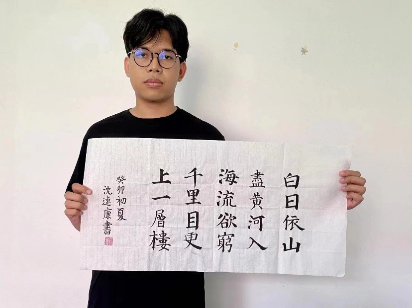 我校柬埔寨籍学生沈速康书法作品进入北京市大学生书法大赛决赛