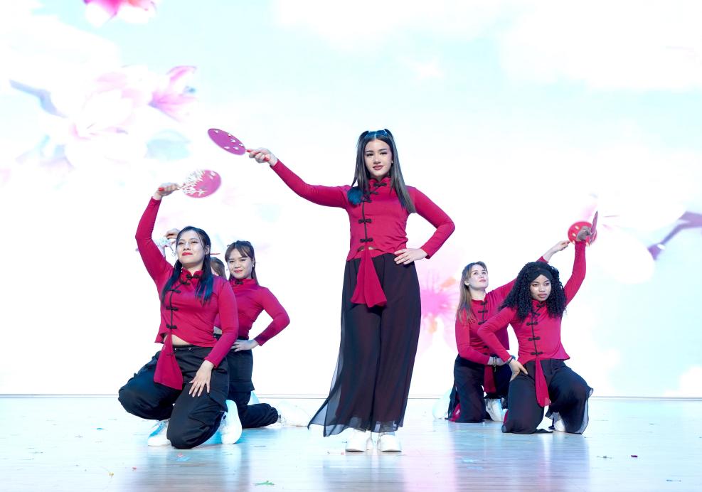 元启新程,岁律更新。12月30日下午,学校在校本部琢玉讲堂隆重举办2026年新年联欢会。由国际学院精心筹备特别节目《丝路新韵·诗舞迎春》首次亮相学校新年联欢舞台,用诗词歌舞彰显留学生青春风采,演绎中外文化交融的独特韵味。此次精彩的节目呈现为学校新年联欢会注入了浓厚的喜庆氛围与鲜明的文化亮点,成为了晚会的高潮。此次节目由留学生办公室副主任杨策勋老师担任指导教师。