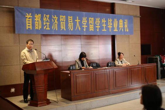 1月8日上午,国际学院2015年度秋季学期留学生结业典礼在红庙校区隆重举行。共计100余名师生参加了结业典礼,国际学院院长王少国、副院长朱红及国际学院的教职员工出席了结业典礼。王少国院长在会上致辞,他代表学院对顺利结业的留学生表示热烈的祝贺,同时也对学院教学和管理岗位老师的辛勤工作表示感谢。他希望广大留学生们珍惜在学校结下的友谊,常与母校联系,常回母校欢聚。也希望留学生们结业后,向世界宣传中国,传播中国文化,让世界更好地了解中国,做一名促进中外友谊发展的友好使者。