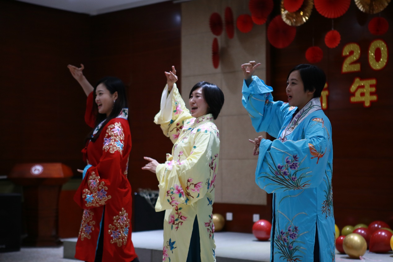 12月27日下午,国际学院在红庙校区举行了以“五洲文化迎新”为主题的新年联欢会。国际学院直属党支部书记何丽、院长王少国及学院各部门主管、任课教师,与近百名留学生一起联欢,共同庆祝新年。