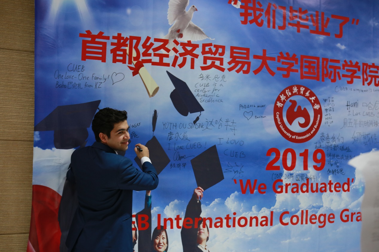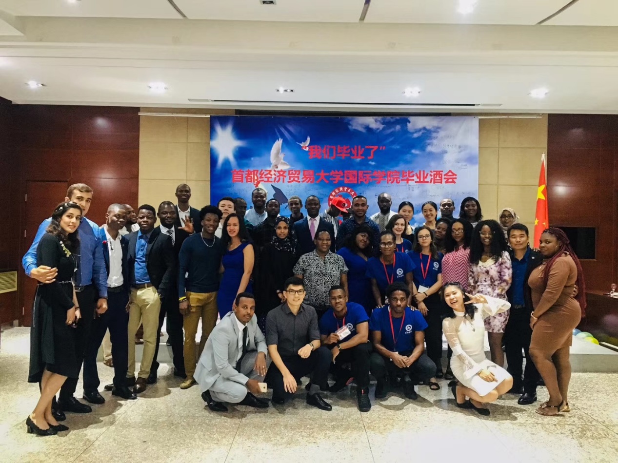 又是一年毕业季,2019年,共有61名学历项目留学生毕业或结业,他们将带着在首经贸收获的知识和技能,以及对中国更深刻的认识和了解,对母校的深深情谊去往世界各地,开始他们新的人生里程。为了祝贺这些学生顺利毕业结业,国际学院于7月5日晚举办了2019届毕业生酒会。国际学院直属党支部书记兼副院长何丽、留学生办公室主任于佳及留办其他工作人员,与毕业生们一起庆祝他们人生的这一重要时刻。