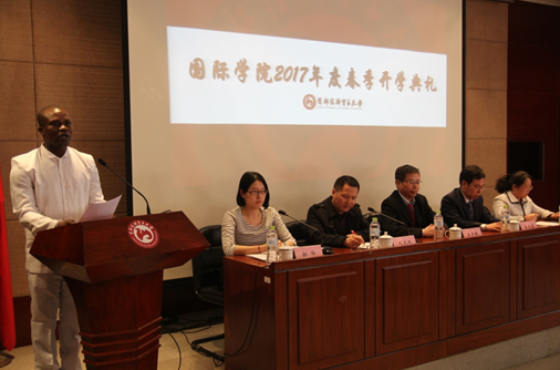 2月27日上午,国际学院2017年春季学期留学生开学典礼在红庙校区举行。国际学院院长王少国、党支部书记兼副院长李凤磊、副院长朱红、教研室主任刘文政及国际学院的教职工出席了开学典礼。
