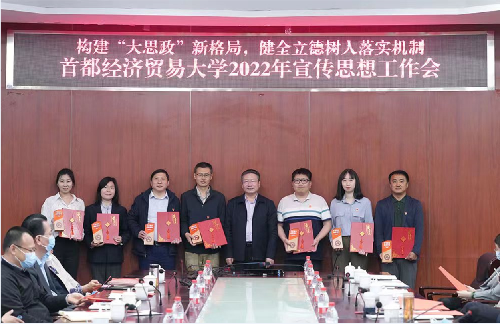 4月27日,在习近平总书记刚刚考察调研中国人民大学并发表重要讲话之际,学校在博纳楼会议室召开2022年宣传思想工作会,学习贯彻习近平总书记关于教育工作和宣传思想工作的重要论述,总结并部署学校2022年的宣传思想工作,同时对2021年度学校宣传工作的先进集体和个人进行了表彰。我院推荐上报的“北京文化新视点” 丛书荣获“文化建设品牌项目”,周磊老师获得“宣传思想工作先进个人”。