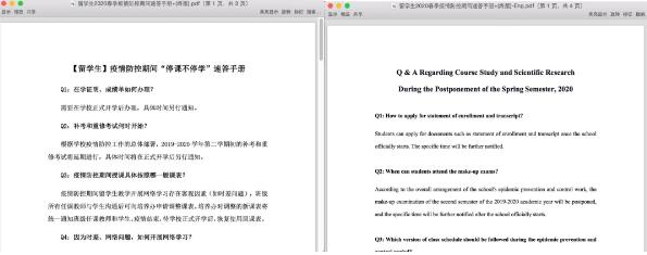 “停课不停学”速答手册(双语版)解答留学生学习和生活上的问题