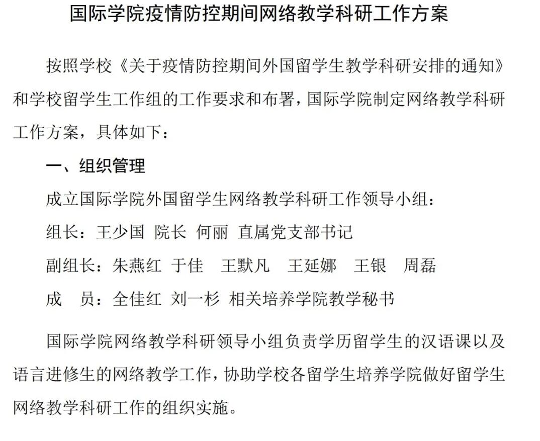 国际学院疫情防控期间网络教学科研工作方案