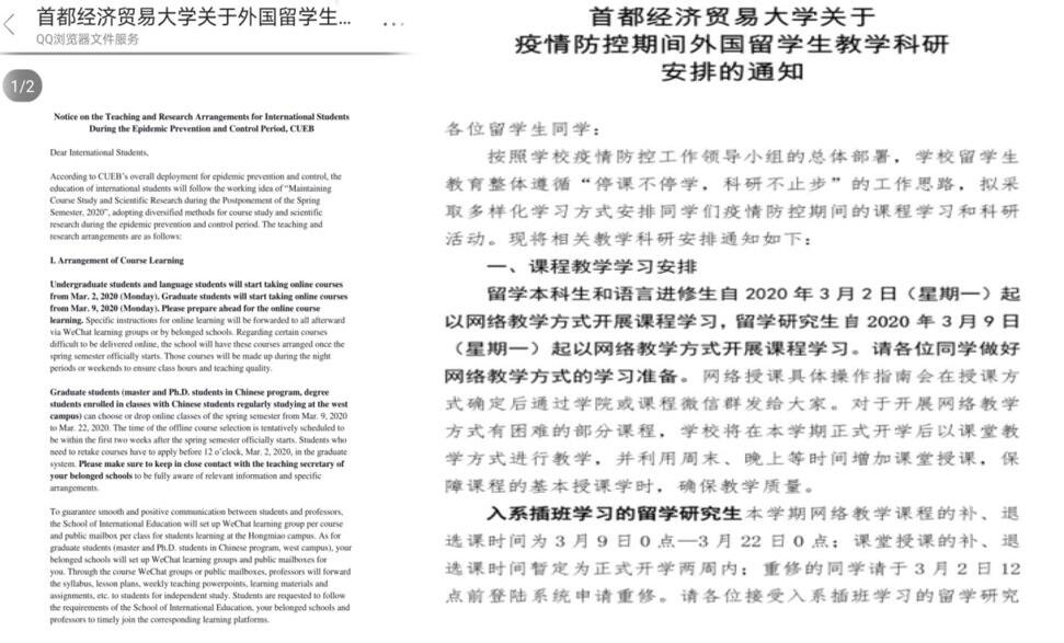 天涯若同窗,五洲“云授课”。今年的春天格外与众不同,但无论身在何处,国际学院都竭尽全力为留学生们做好了上课准备。期待早日与来自五湖四海的你重聚在芬芳多姿的首经贸校园。