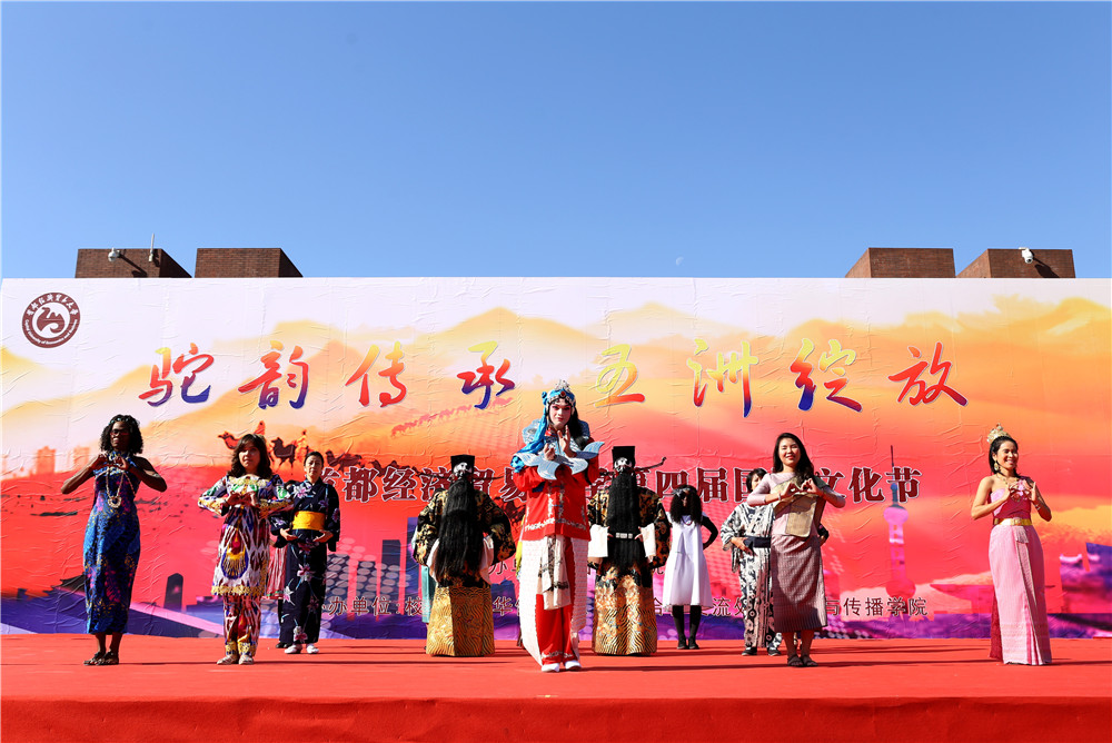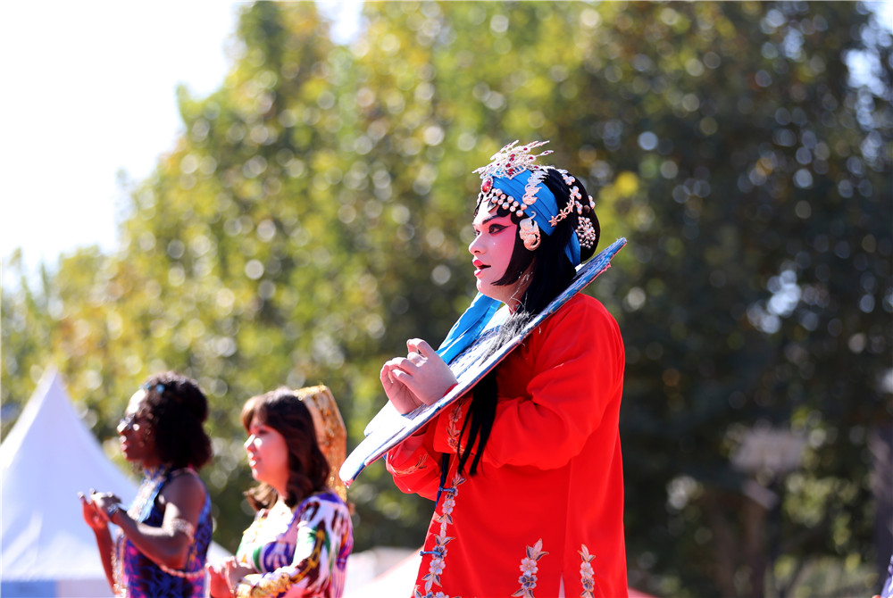 10月31日,首经贸第四届国际文化节开幕式上,在经典京胡乐曲《小开门》的旋律中,几位不同肤色的留学生身着本国特色服饰手拉手翩翩起舞。锣鼓响起、丝竹悠扬,他们或扮成《淮河营》中的蒯彻,或扮成《打龙袍》中的包拯,或扮成《女起解》中的苏三,踩着京剧锣鼓点走上舞台,一招一式、一颦一笑尽显京剧的魅力。