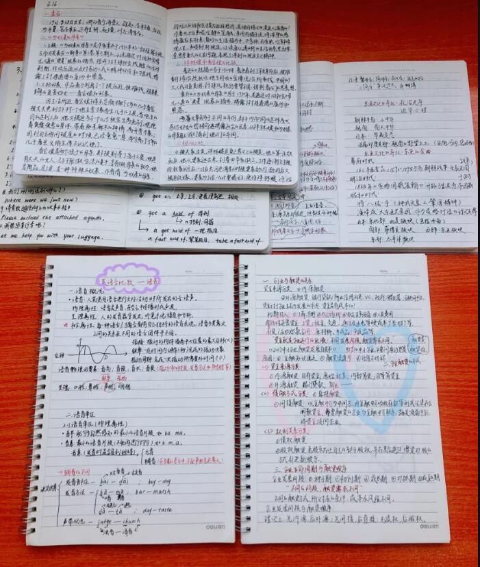 个人认为,笔记在精不在于多,在于突出重难点不在于眼花缭乱。因此,只要紧紧地跟着老师的脚步,记下多次强调的重难点,分颜色来记有助于加深记忆,但过于五颜六色,反而会凌乱。