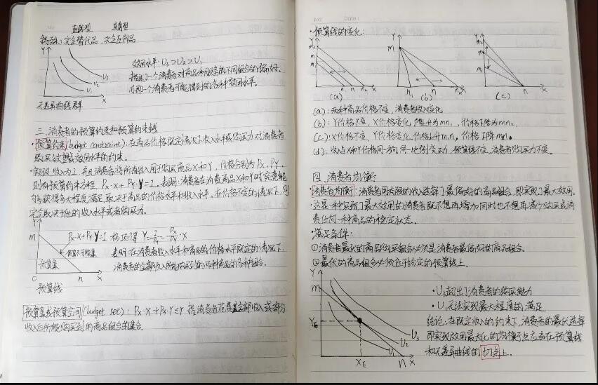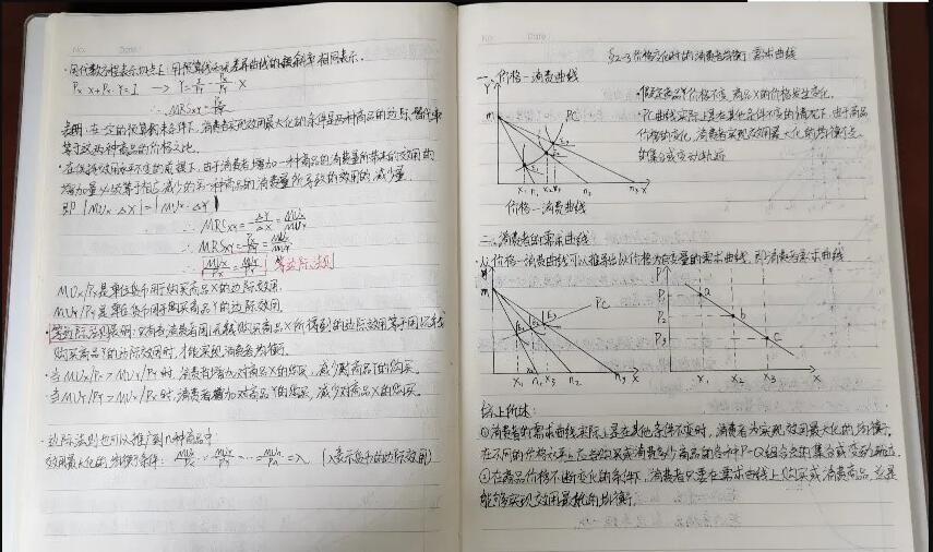 对于我们这些经济学小白来说,微经学习的主要难点是经济学名词的解释和图像的分析。为了克服困难,我在笔记中用红笔重点画出了经济学名词,同时,在图像一侧记录分析过程,以便复习时查看。