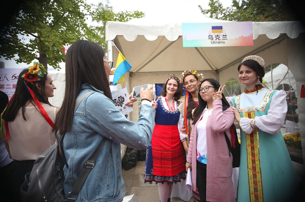校党委书记冯培、党委副书记孙善学、副校长徐芳、10余所国外大学校长及20余所中国大学校长中外嘉宾先后参观了各国展台,品尝了本国特色美食,观看文艺汇演,并与留学生就本国文化习俗等话题展开亲切交谈。此次活动吸引了大量的返校校友、学生和中外来宾前来,他们辗转各个展台,试穿各国传统服装,品味特色美食,参与各种趣味活动,在流连忘返中体验学校蓬勃发展的国际化氛围。