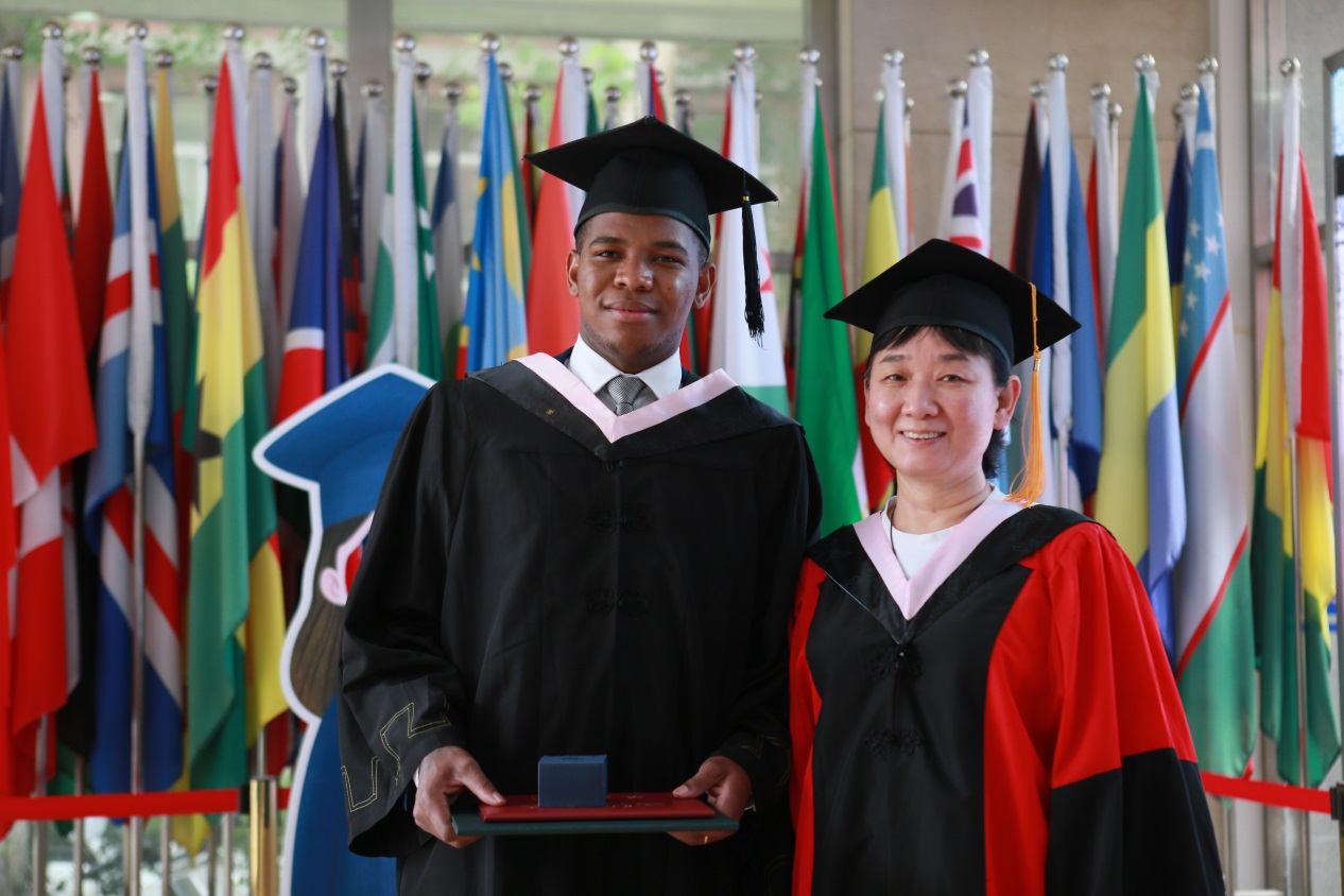 国际学院副院长(主持工作)关鑫代表学院向2022届毕业国际学生表示热烈的祝贺,希望他们带着在中国的所学所感,面向未来,在人生未来的征途中乘风破浪、逐梦远航。讲好中国故事,做世界互通互联的友谊桥梁,成为中国与世界交流合作的友好使者。