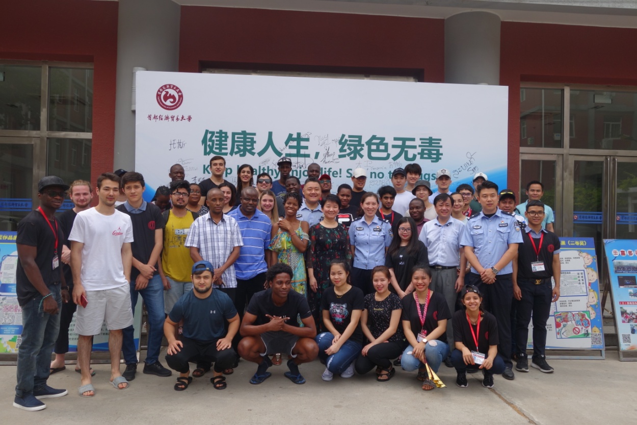 为进一步加强留学生禁毒教育,增强留学生对毒品危害的了解,提高来华留学生防毒反毒意识,我校联合北京市公安局出入境管理总队共同举办了禁毒宣传活动。本次活动在红庙校区会展中心门前小广场举办,以“健康人生,绿色无毒”为主题,共吸引了80余名留学生参加。