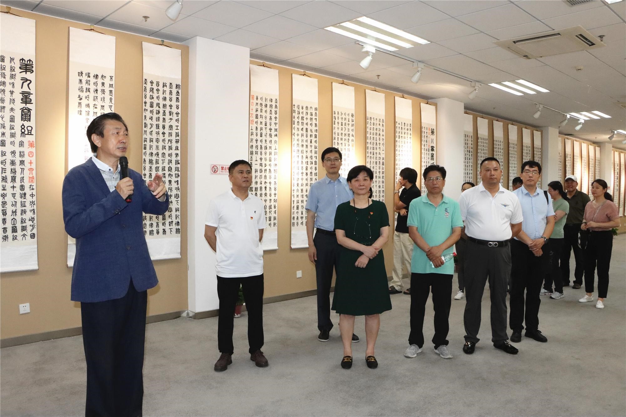 国际学院直属党支部书记何丽主持开展仪式,并致开幕词。书法艺术家窦万兴向参展嘉宾介绍其创作初衷,并解读作品。