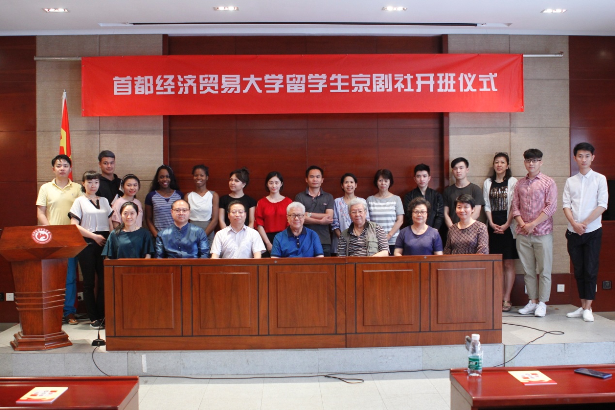 6月27日下午,首都经济贸易大学留学生京剧社在国际学院12号楼会议中心举行了隆重的开班仪式。