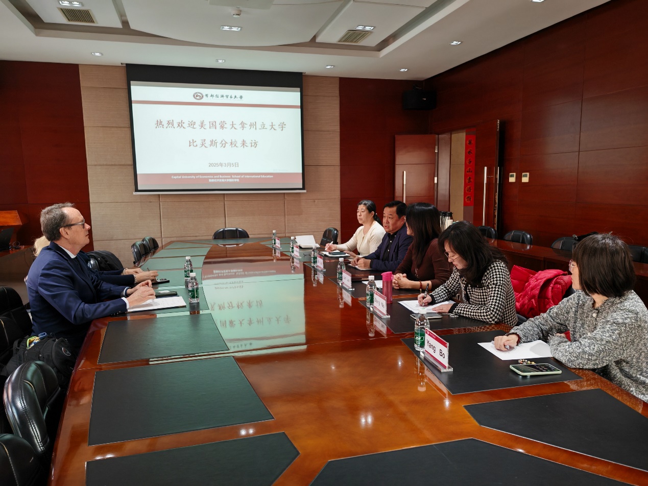 福斯特博士对国际学院的热情接待表示感谢,并高度认可学院在国际学生培养领域的创新举措。他表示:“首都经济贸易大学国际学院的课程设置与实践活动基地令人印象深刻,特别是在中文教学与专业课程结合方面,为国际学生创造了独特的学习体验。”双方重点探讨了未来在课程共建、短期学术交流项目以及学生联合活动等领域的合作可能性,一致同意通过资源共享推动两校国际化教育的高质量发展。