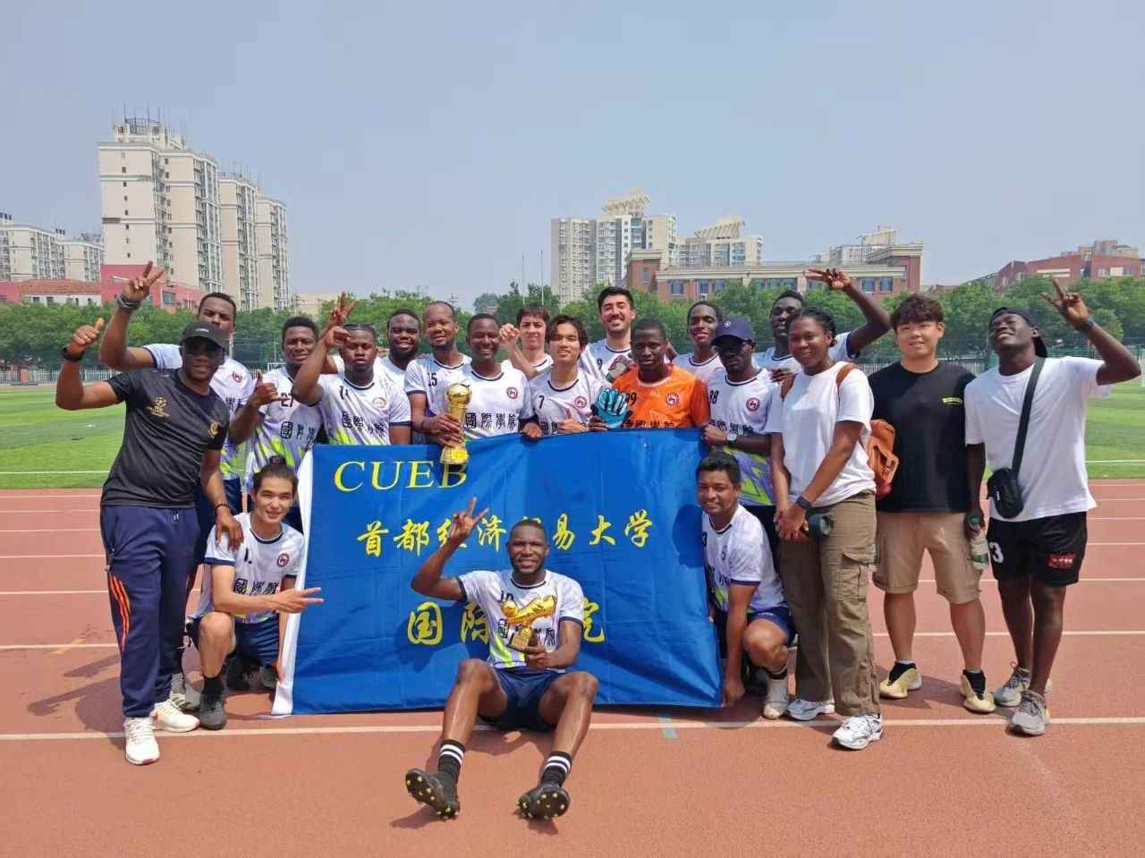冠军!国际学生在学校2024-2025足球冠军杯比赛中取得佳绩5月20日,首都经济贸易大学足球冠军杯决赛现场掌声雷动, 国际学院足球队以6:0的悬殊比分战胜华侨学院,在学校2024-2025足球冠军杯比赛中取得第一。2025.05.24 -